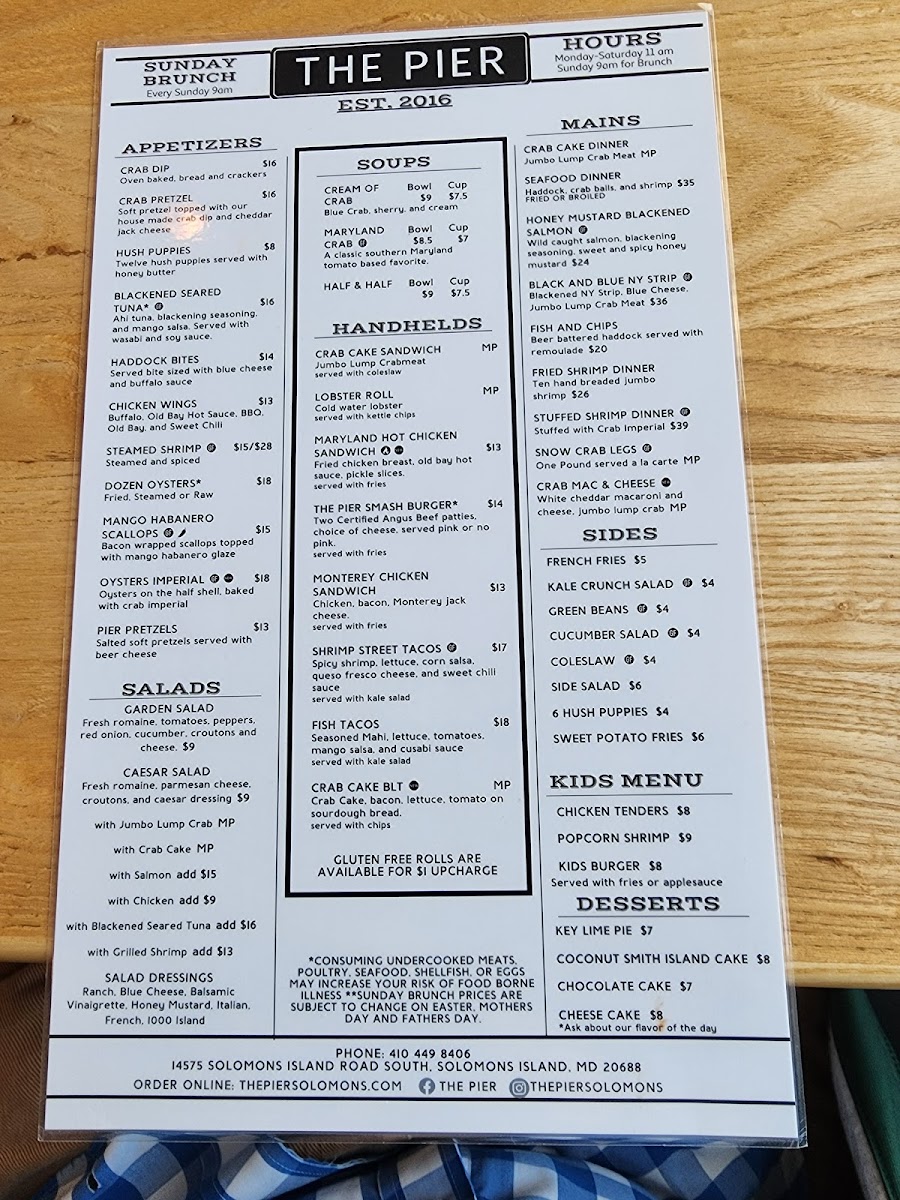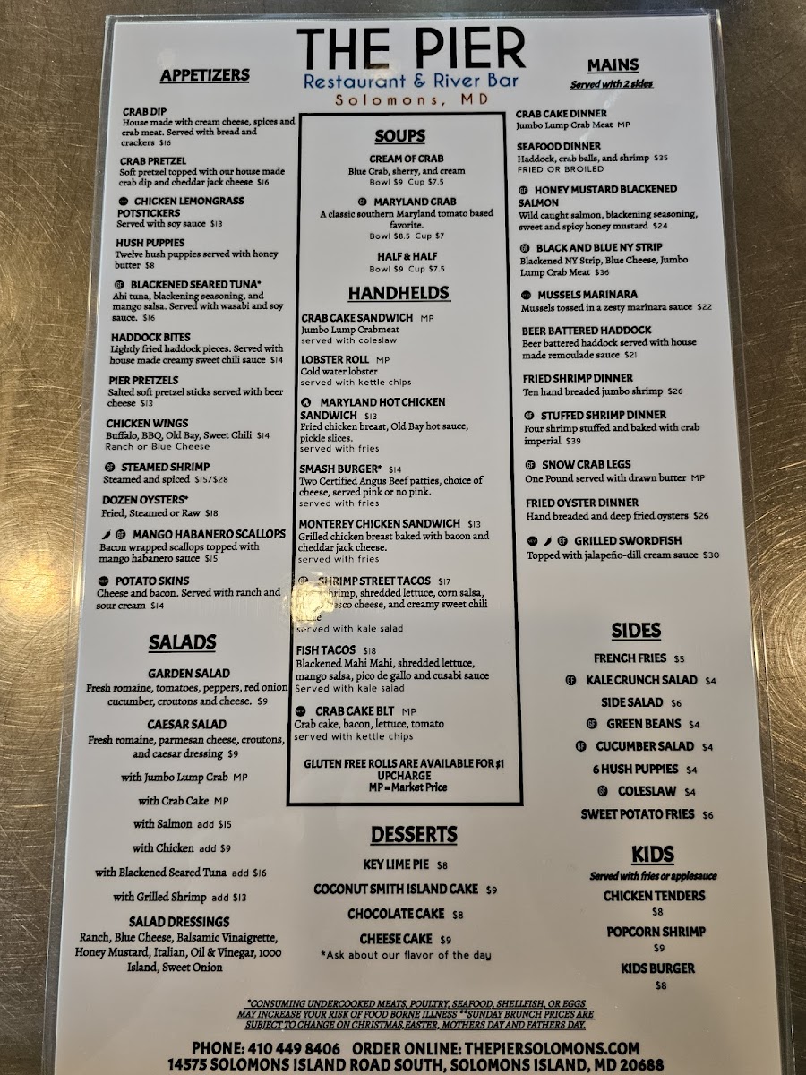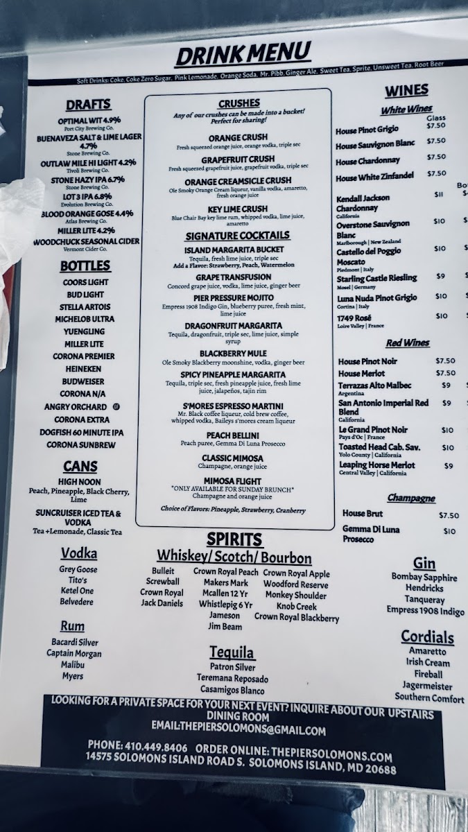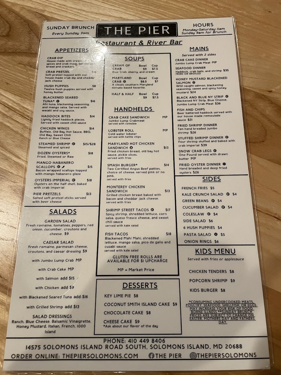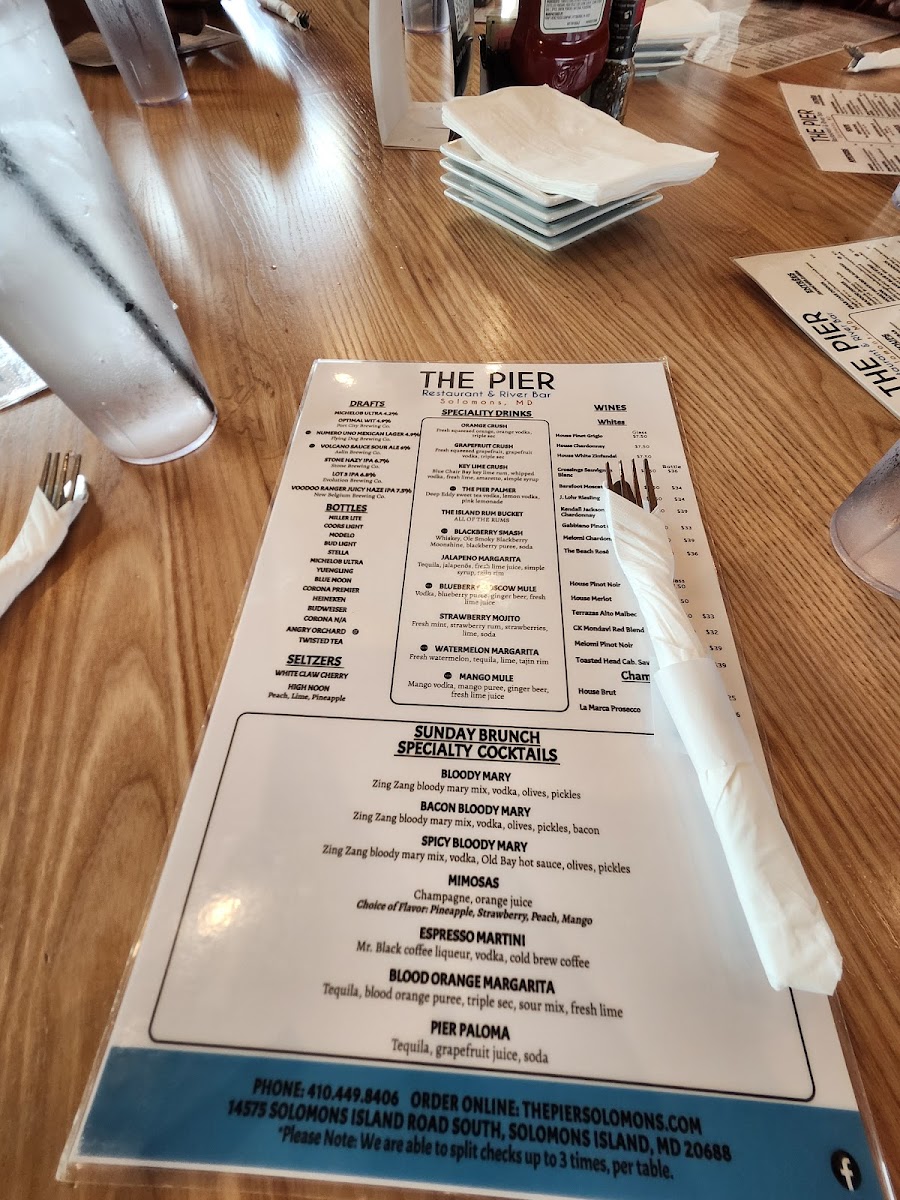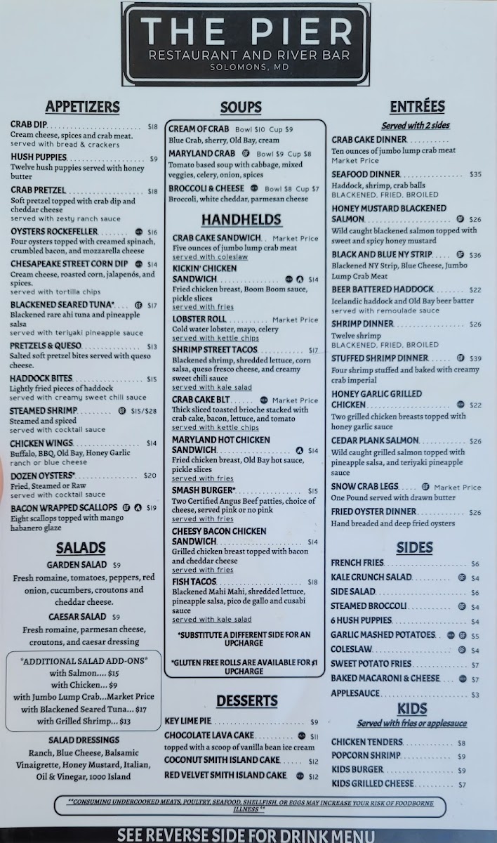 At The Pier Restaurant (Solomons Island, Md) Menu, you’ll find a delightful mix of coastal flavors that perfectly complement the stunning waterfront views. Located at 14575 Solomons Island Rd S, Solomons, MD, this spot offers a variety of seafood options and classic American dishes, all made with fresh, locally sourced ingredients. Whether you're in the mood for a light appetizer, a hearty entrée, or a sweet dessert to wrap up your meal, the menu has something for everyone. From succulent crab cakes to flavorful fish dishes, there's no shortage of delicious choices that capture the essence of Maryland’s rich seafood heritage. With its casual yet inviting atmosphere, The Pier Restaurant is the perfect place to enjoy a relaxed meal with friends and family, overlooking the serene waters.